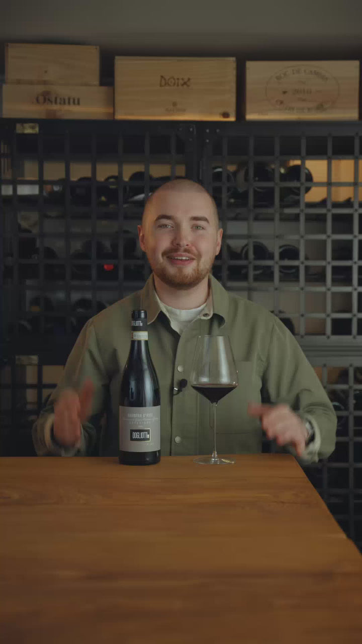 Barbera d’Asti Superiore är en av Dogliottis mest ambitiösa tolkningar av Barbera och visar druvans potential i sin mest seriösa form. Druvorna växer på kalkrika sluttningar runt Asti och skördas sent för att ge maximal koncentration. Enligt DOCG-reglerna måste ett Superiore lagras minst 14 månader, varav minst 6 på ekfat, något som ger extra struktur och komplexitet. Med över 150 års erfarenhet lyfter Dogliotti här fram en kraftfull och elegant stil av Barbera, där fruktens djup möter fatens avrundande nyanser. Resultatet blir ett vin med tyngd och karaktär som är lika självklart till vardagens långkok som till festens större rätter.